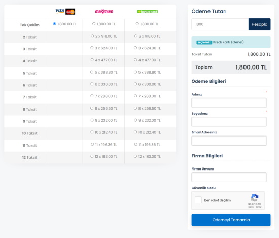 - Site ve ödeme modüllerini ayırabilirsiniz. Böylece ana sitede farklı, tahsilat ekranında ayrı banka ve vade oranları sunabilirsiniz.