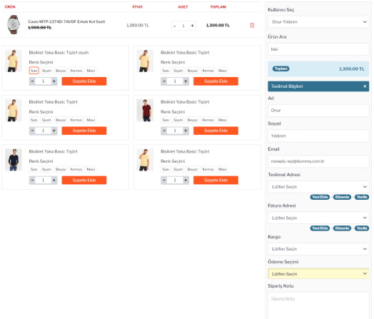 Hızlı Sipariş Modülü, yönetici veya izin verilen bayi grubuna, başka bir kullanıcı adına tek ekran üzerinden sipariş verebilmesini sağlar.