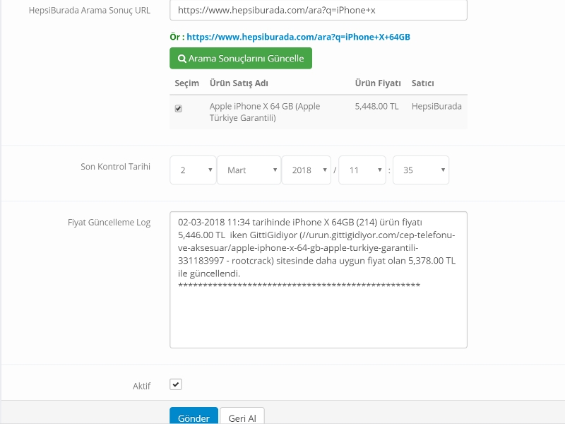 - Birden fazla eşleştirme yapıp, her gün en düşük fiyata göre işlem yapılmasını sağlayabilirsiniz.