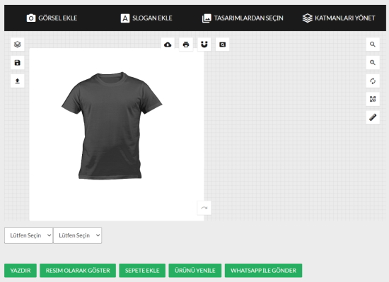 Ürün tasarım modülü ile t-shirt, sweatshirt, telefon kılıfı, kupa gibi ürünlerin üzerine hazır veya kişisel resim ve slogan (text) ekleterek, kişiye özel tasarımlı ürün siparşleri alabilirsiniz.